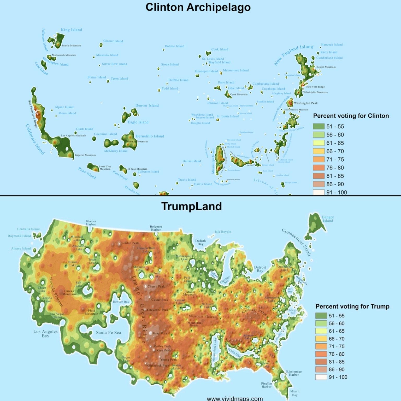 The following maps show dissimilar (urban vs non-urban) interests. Red State, Blue City: How the Urban-Rural Divide Is Splitting America The nation's blue islands reject the red sea and the red sea opposes blue islands. So it is in New York State as well.